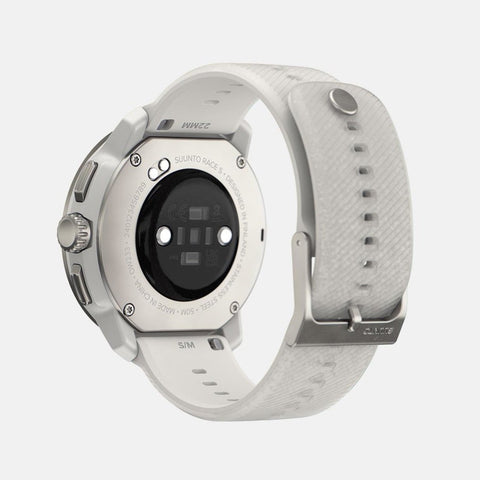 The watch design derives from the original Suunto Race with its shape, digital crown, and AMOLED display. With the bright high definition touch screen, the display is super sharp even in fast situations and sunlight. Suunto Race S has a sleek, smooth look to suit different styles, and a smaller, compact fit. With its lighter weight, it adds comfort in races, training and everyday.